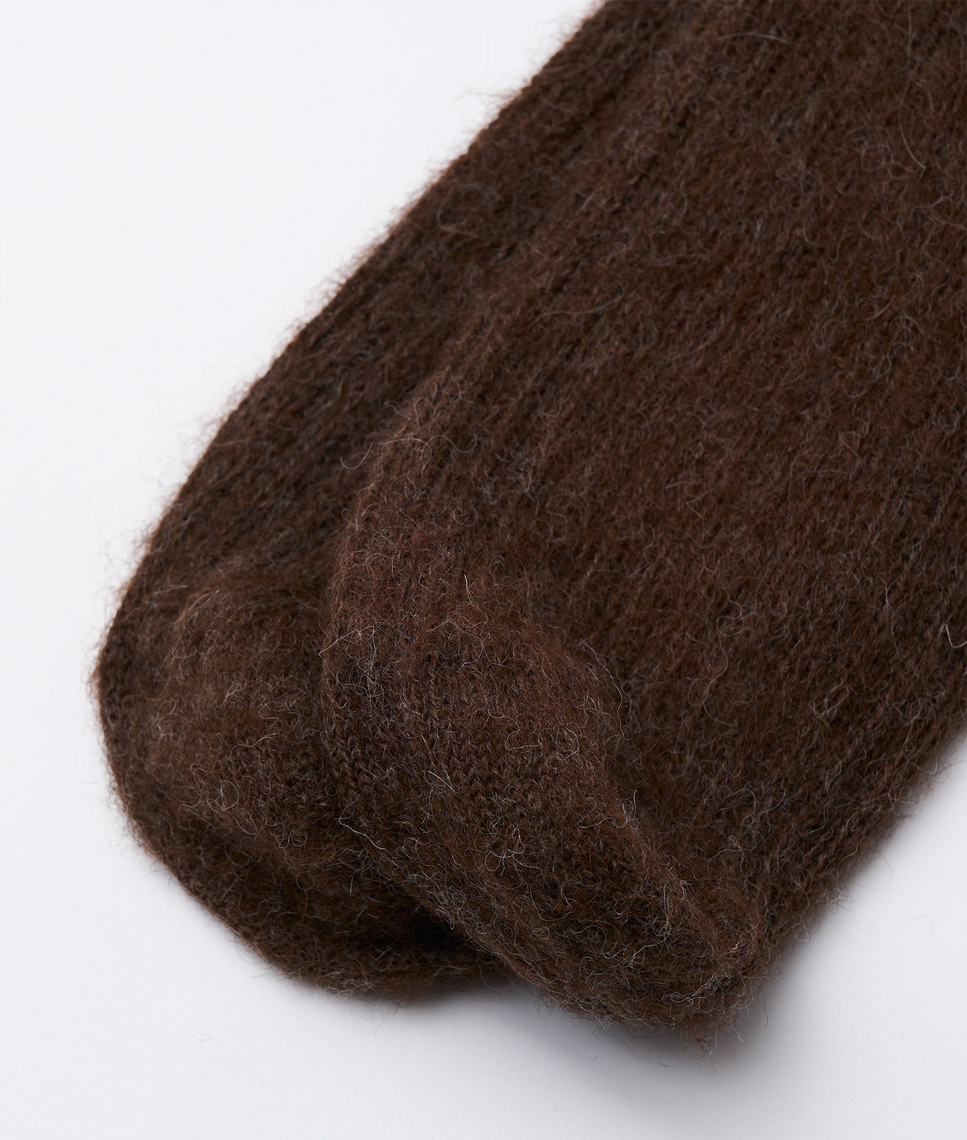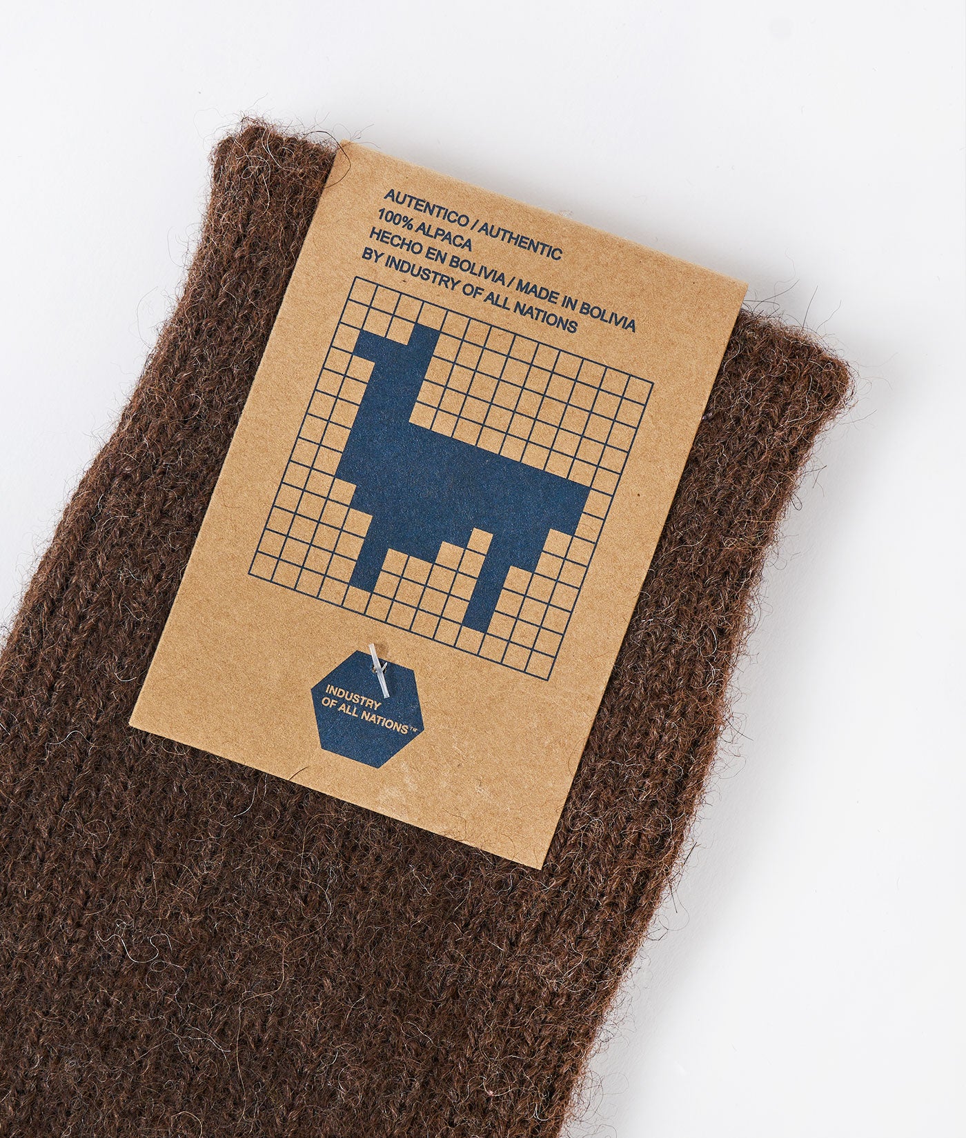 IOAN Alpaca Cabin Socks are made from 100% alpaca wool by a Bolivian co-op of farmers, manufacturers, and knitters. The production of these ultra soft and cozy socks supports the local lifestyles, craftsmanship, and the future of this community. The sustainable process of only using virgin fibers in their undyed state reduces pollution, conserves resources, and allows the natural qualities of the materials to be appreciated for what they are.