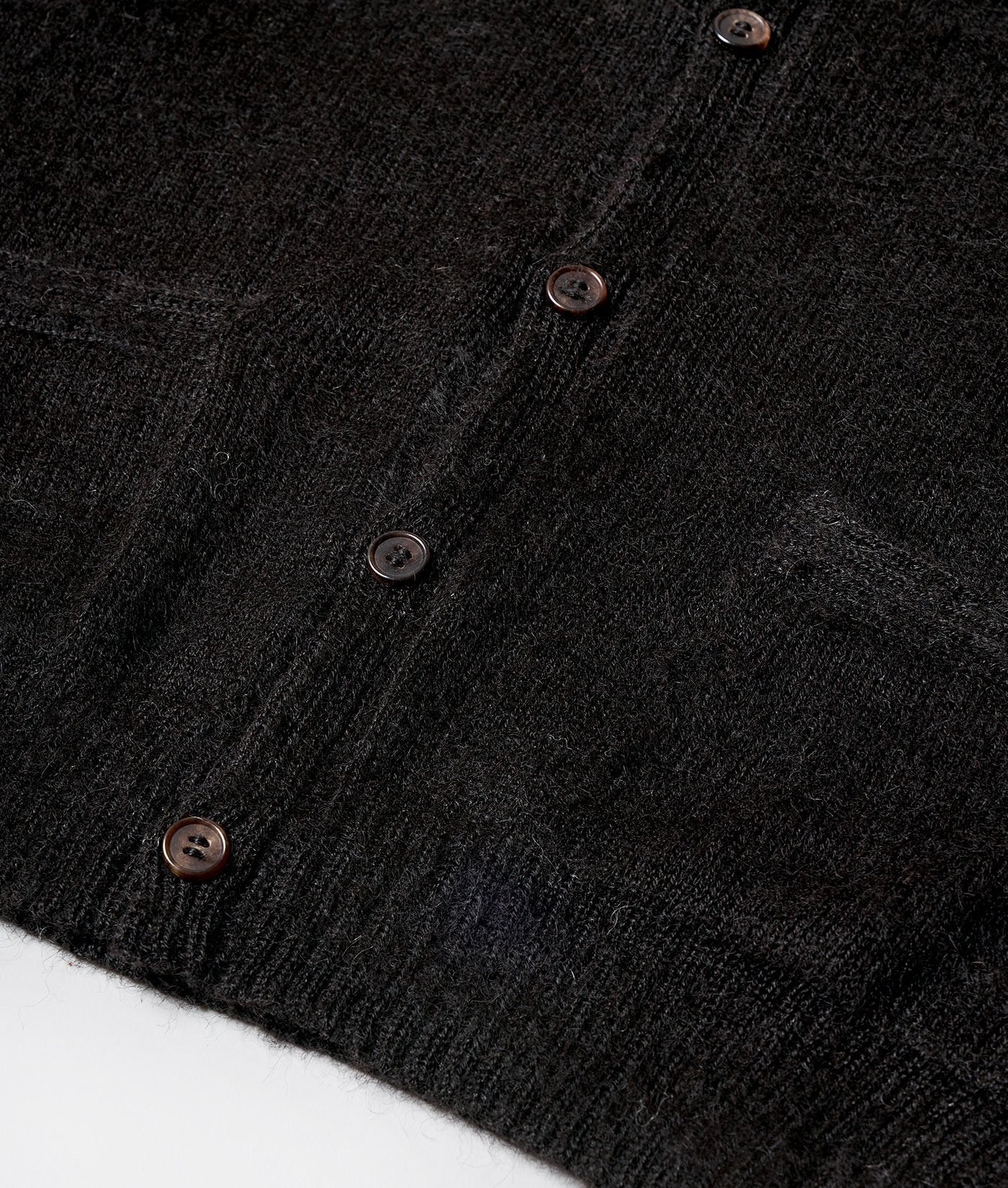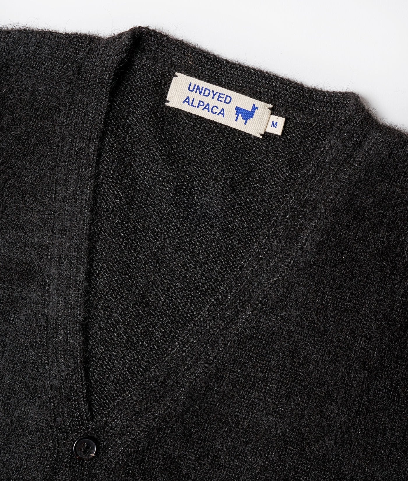 The IOAN Alpaca Cardigan is made from 100% alpaca fiber by a Bolivian co-op of farmers, manufacturers, and knitters. This hypoallergenic sweater is finished with genuine horn buttons and knit in a classic cardigan fit. The production of this ultra soft, medium-weight cardigan sweater supports the local lifestyles, craftsmanship, and the future of this community. This garment is undyed and the color of the fibers comes completely from the superfine, natural hairs of the alpaca that are transformed into yarn for artisans to knit.