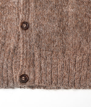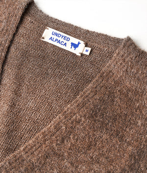 The IOAN Alpaca Cardigan is made from 100% alpaca fiber by a Bolivian co-op of farmers, manufacturers, and knitters. This hypoallergenic sweater is finished with genuine horn buttons and knit in a classic cardigan fit. The production of this ultra soft, medium-weight cardigan sweater supports the local lifestyles, craftsmanship, and the future of this community. This garment is undyed and the color of the fibers comes completely from the superfine, natural hairs of the alpaca that are transformed into yarn for artisans to knit.