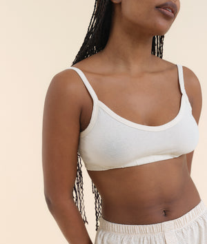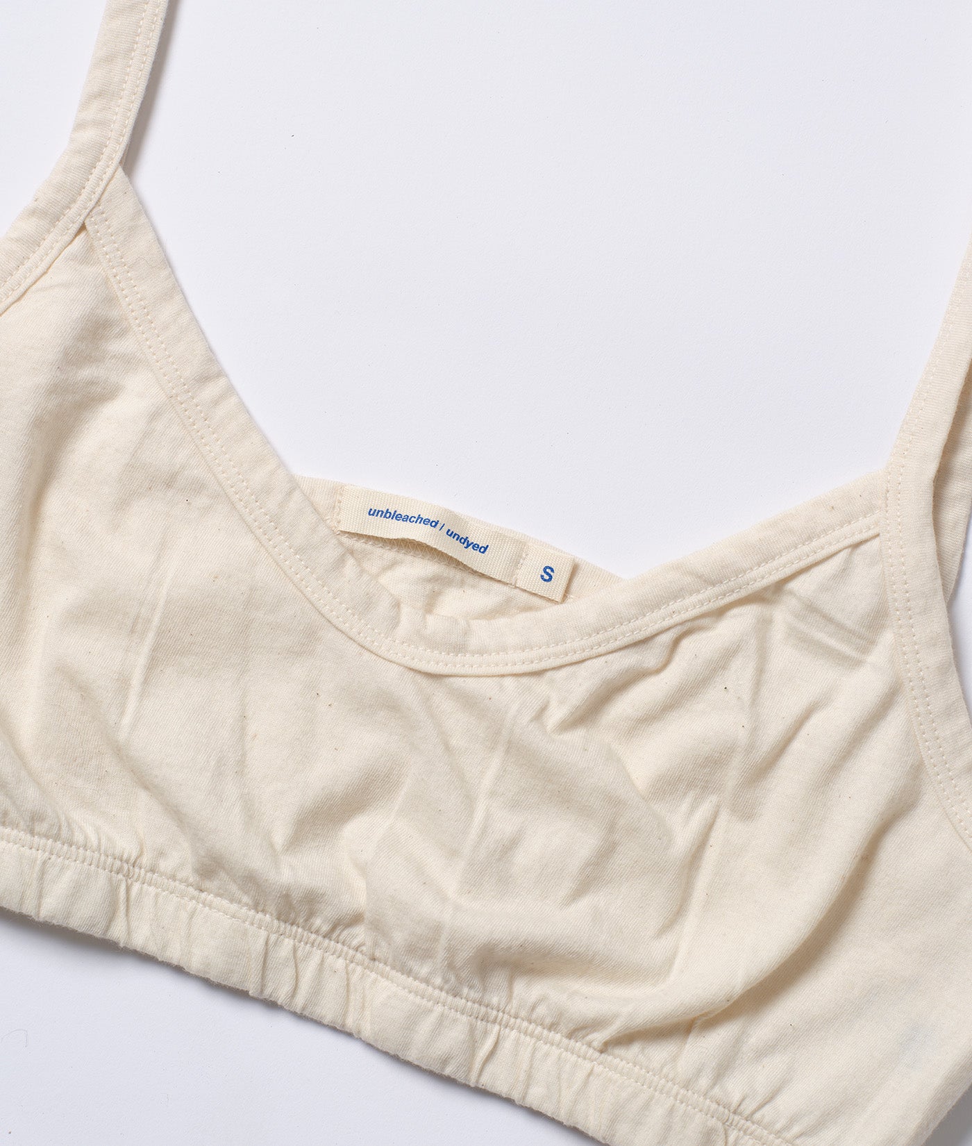 This unbleached and undyed bralette is made from 100% organic cotton, offering a soft, natural feel against the body. Produced at the source of the raw material in Tamil Nadu, India, it combines simplicity with thoughtful craftsmanship. Seamless design and an understated elegance make it a timeless essential for everyday comfort.