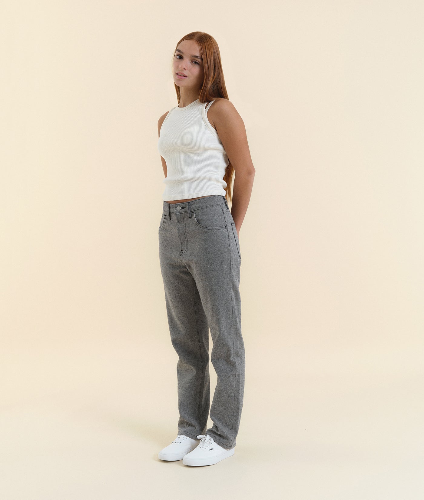 The Classic Jeans have a unisex fit, with a mid rise and slightly tapered leg. These jeans are made from cotton textile waste, which is collected from local factories and upcycled into new fabric. The process is waterless and does not involve any dyeing or harmful washes. Made in partnership with The New Denim Project in Guatemala City, each pair features a zipper fly and is finished with IOAN nickel-free metal buttons.
