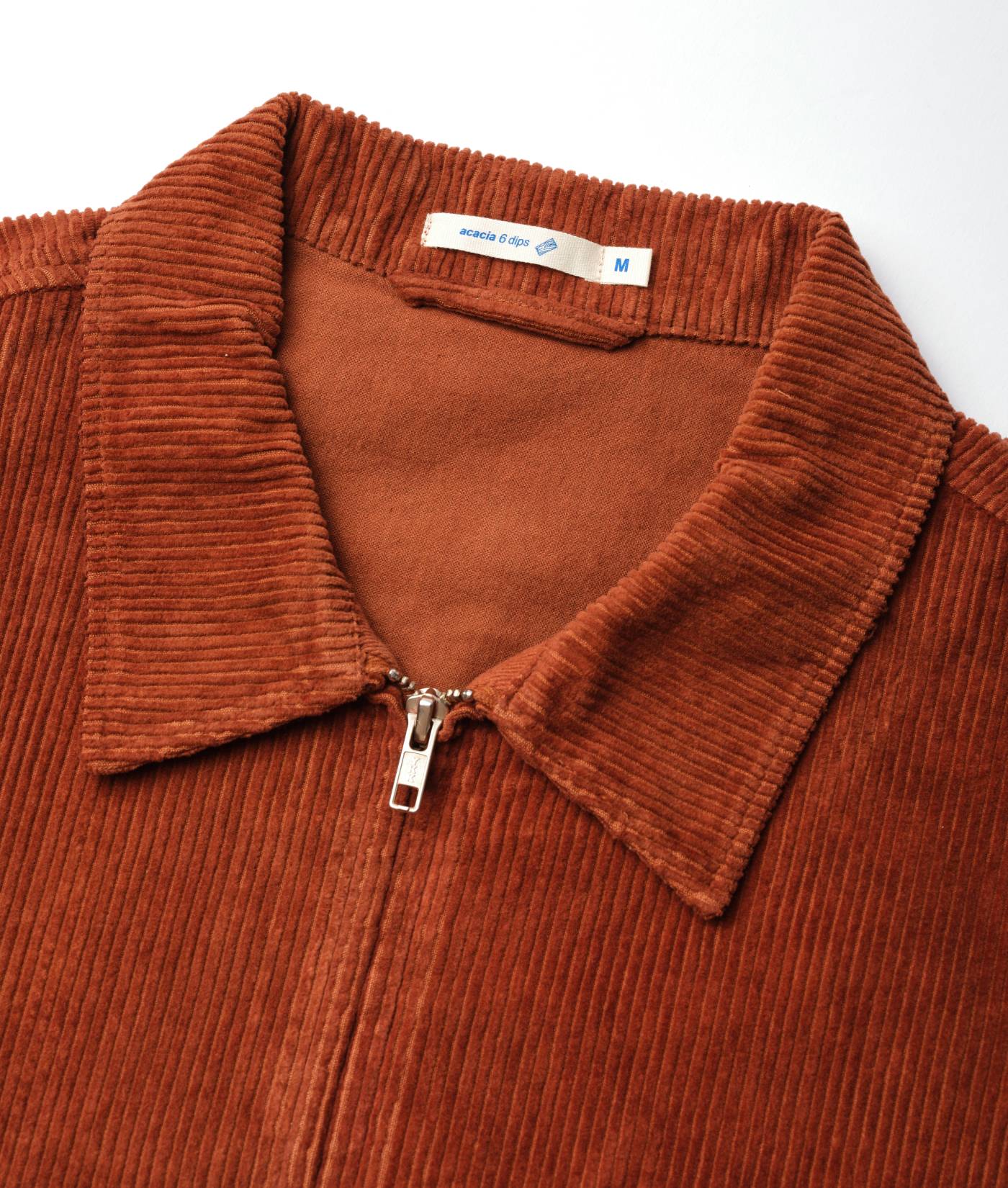 This corduroy zip-up jacket includes IOAN madras fabric lining and wooden buttons, as well as an interior chest pocket for stashing goodies. It is dyed in an acacia tree bark natural dye bath to achieve a rust brown color that gets better with every wear. The Kamaleon Jacket is made with 100% organic cotton in Tamil Nadu, India