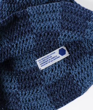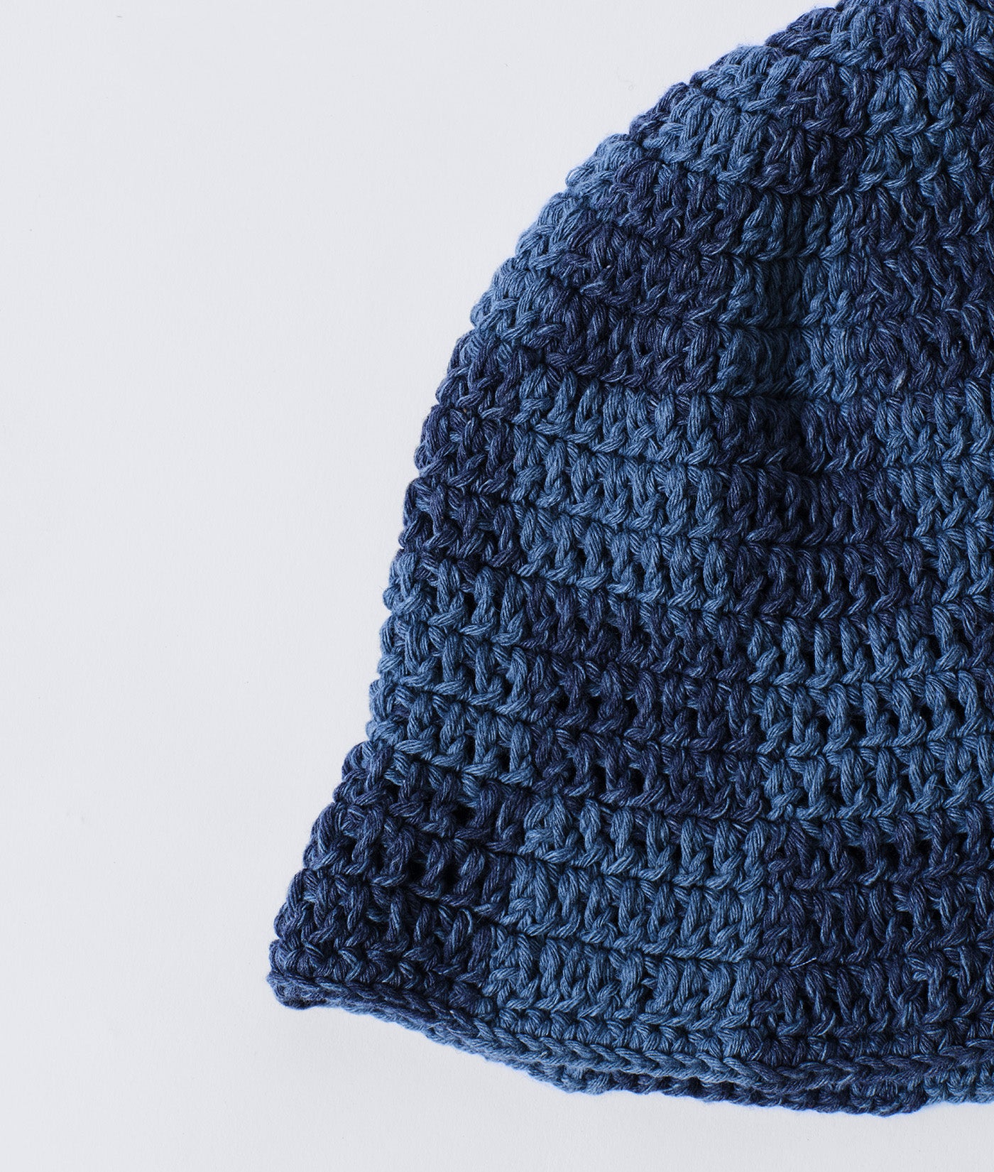 This 100% cotton crochet hat is made from denim scraps and textile waste, collected from garment factories and upcycled into new yarn. The production of this hat requires minimum water usage and does not involve any dyeing or harmful washes.