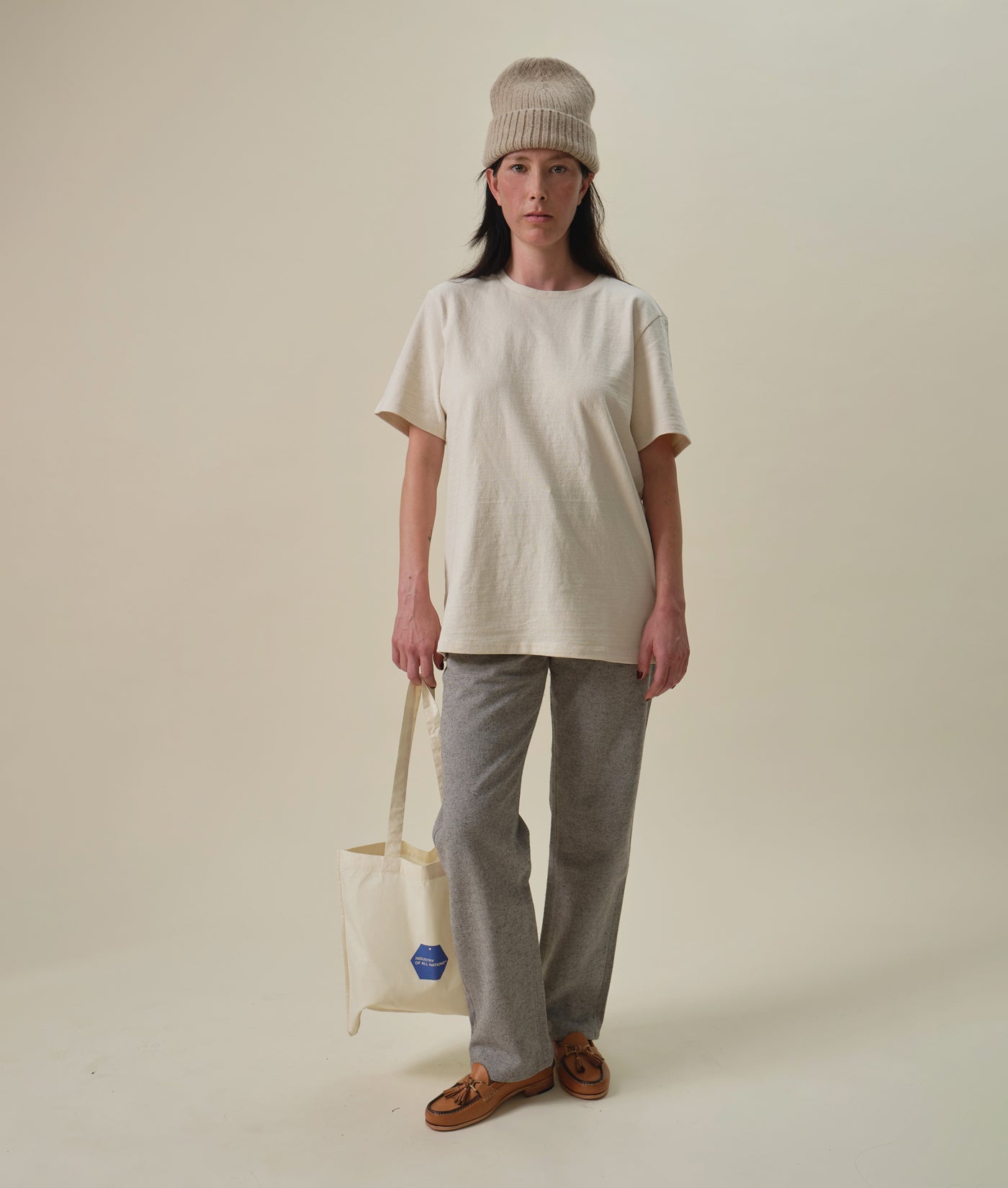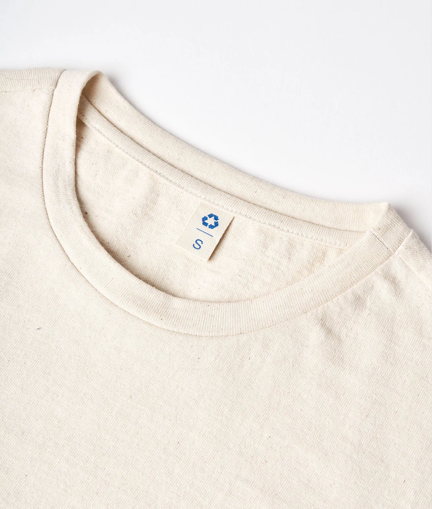 This 100% cotton t-shirt is made from cotton textile waste, which has been collected from local mills and upcycled into new heavyweight jersey fabric. The production process of this garment requires minimum water usage and does not involve any dyeing or harmful washes.