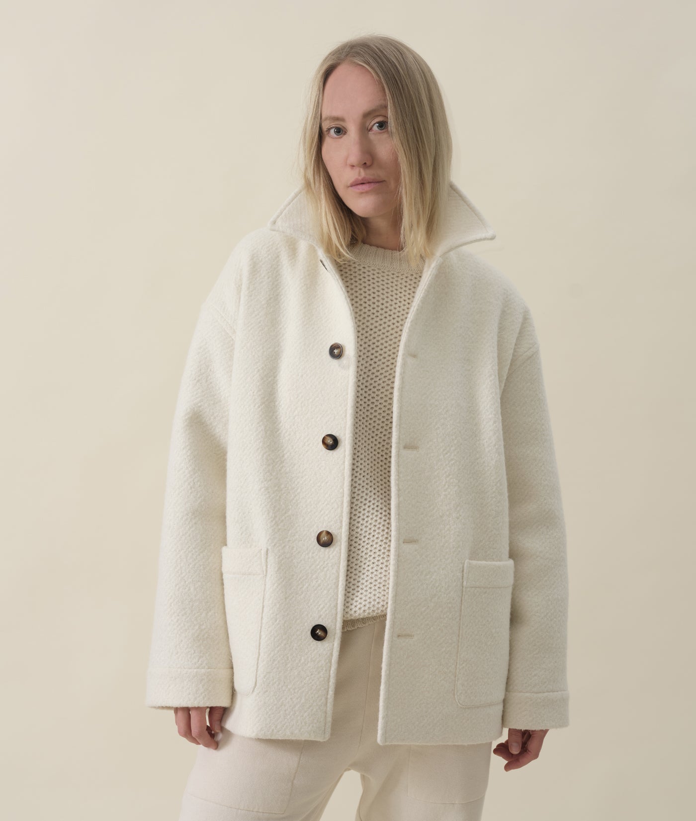 The Ponchito Jacket is a heavy duty winter outer layer, made from 60% sheep's wool and 40% baby alpaca fiber. Unlined, this waist-length outerwear essential ensures maximum warmth while maintaining breathability.