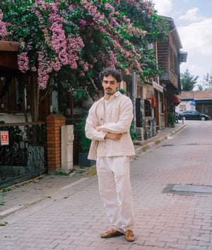 Why bleach or dye a fiber which is originally beautiful? Why spend resources and release wasteful, toxic discharges to change the characteristics of a natural product? IOAN undyed products are made from top quality local organic cotton, loomed in its original state, cut and sewn into garments, and washed in an enzyme water mixed to stabilize its proportions ( pre-shrunk) and to achieve the desired softness.