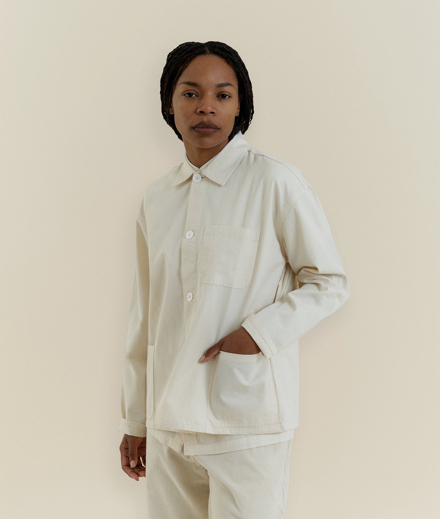 This lightweight jacket is undyed and unbleached meaning the color comes entirely from the virgin fibers of its raw material, using only the minimum amount of processes and resources necessary for production. The IOAN Ponya Jacket is made in Tamil Nadu, India using locally grown 100% organic cotton. Lightweight and easy to move around in, this jacket is our go-to for transitioning seasons.