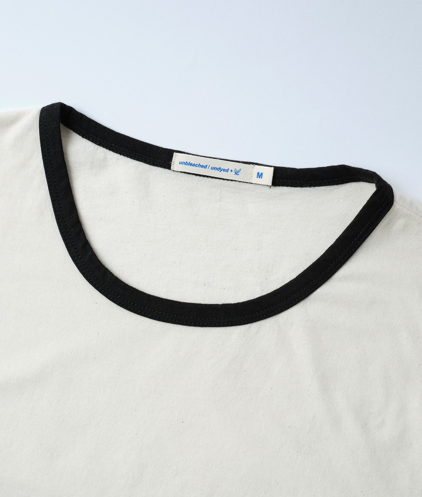 This IOAN essential is a modern take on the classic ringer t-shirt. The neckline has been dipped 8 times in a fermented iron vinegar dye vat to achieve a natural black color, while the rest of the garment is completely unbleached & undyed. Simple and easy to wear, the IOAN Sport Crewneck T-shirt is made from 100% organic cotton and locally manufactured in Tamil Nadu, India.