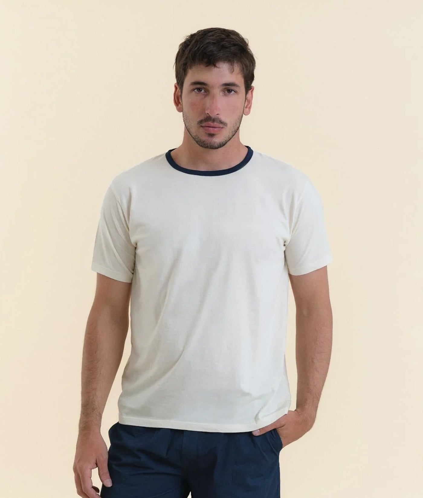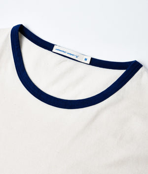 This IOAN essential is a modern take on the classic ringer t-shirt. The neckline has been dipped 12 times in a fermented natural indigo dye vat to achieve a deep indigo color, while the rest of the garment is completely unbleached & undyed. Simple and easy to wear, the IOAN Sport Crewneck T-shirt is made from 100% organic cotton and locally manufactured in Tamil Nadu, India.