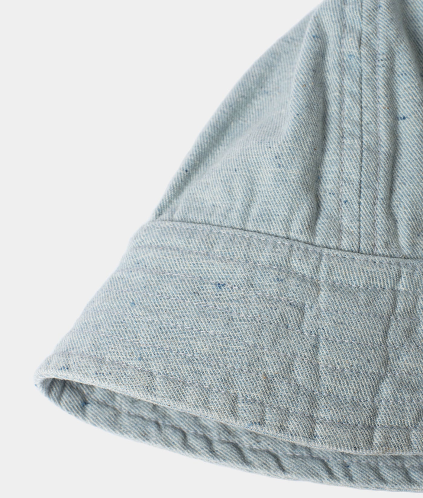 This hat is made from cotton denim scraps, which are collected from factories in Guatemala and upcycled into new fabric. The production process is waterless and does not involve any dyeing or harmful washes.