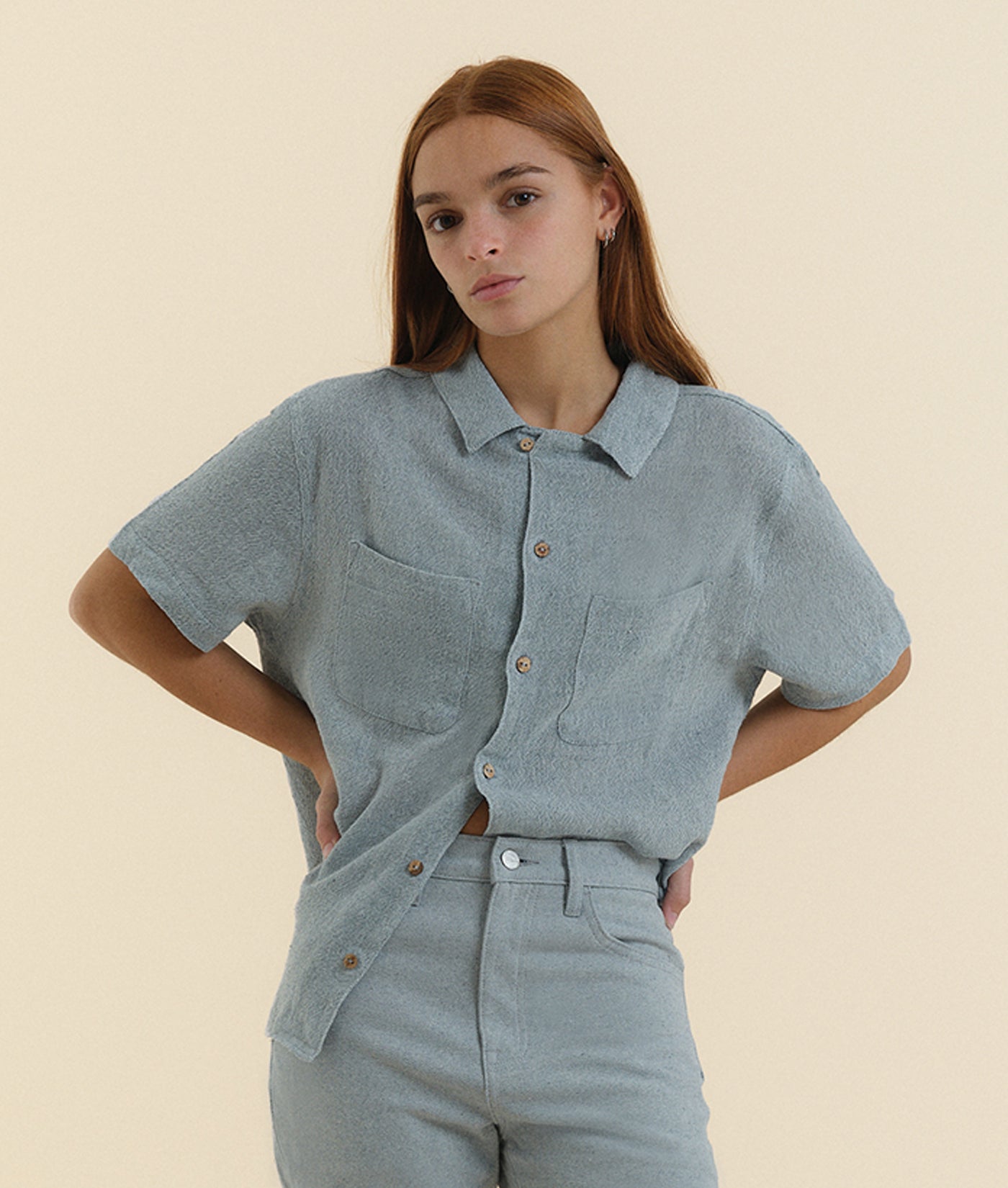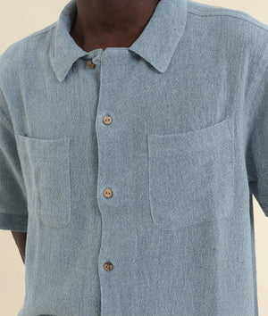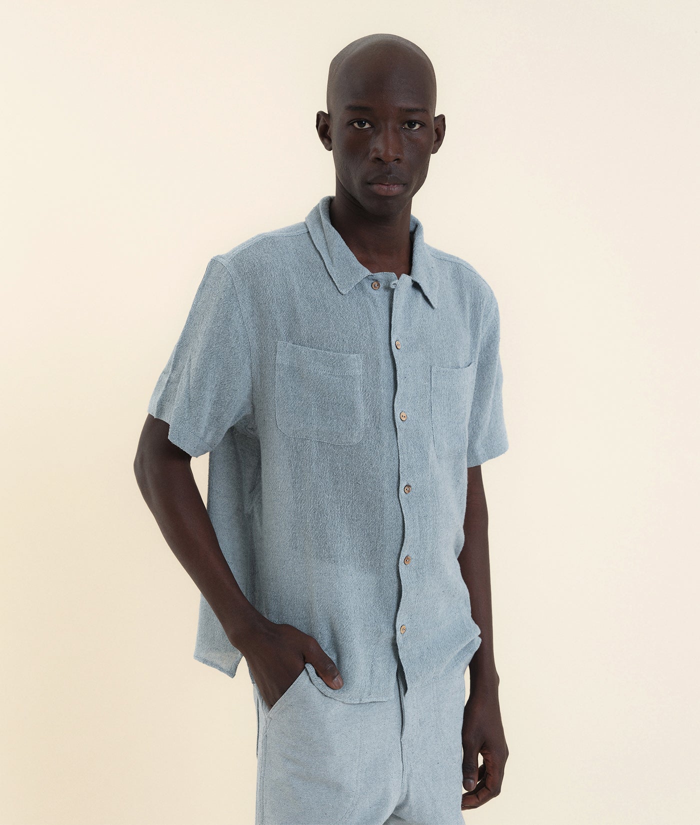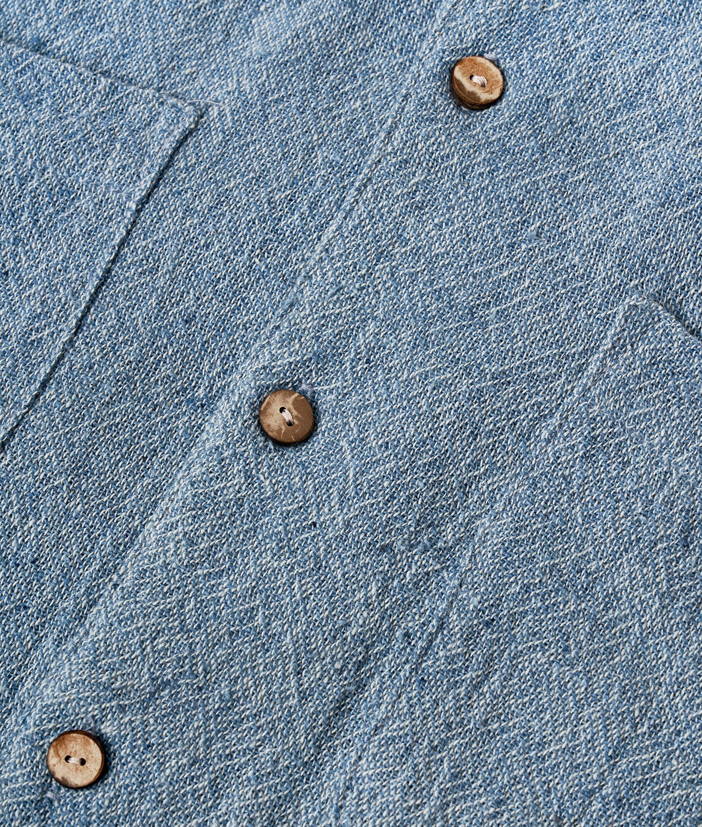 The IOAN New Camp Shirt is made from a mid-weight gauze upcycled fabric and features two functional chest pockets. Hand carved coconut shell buttons offer a finishing touch of subtle, natural detail, making this garment fully biodegradable once it finishes its life cycle.