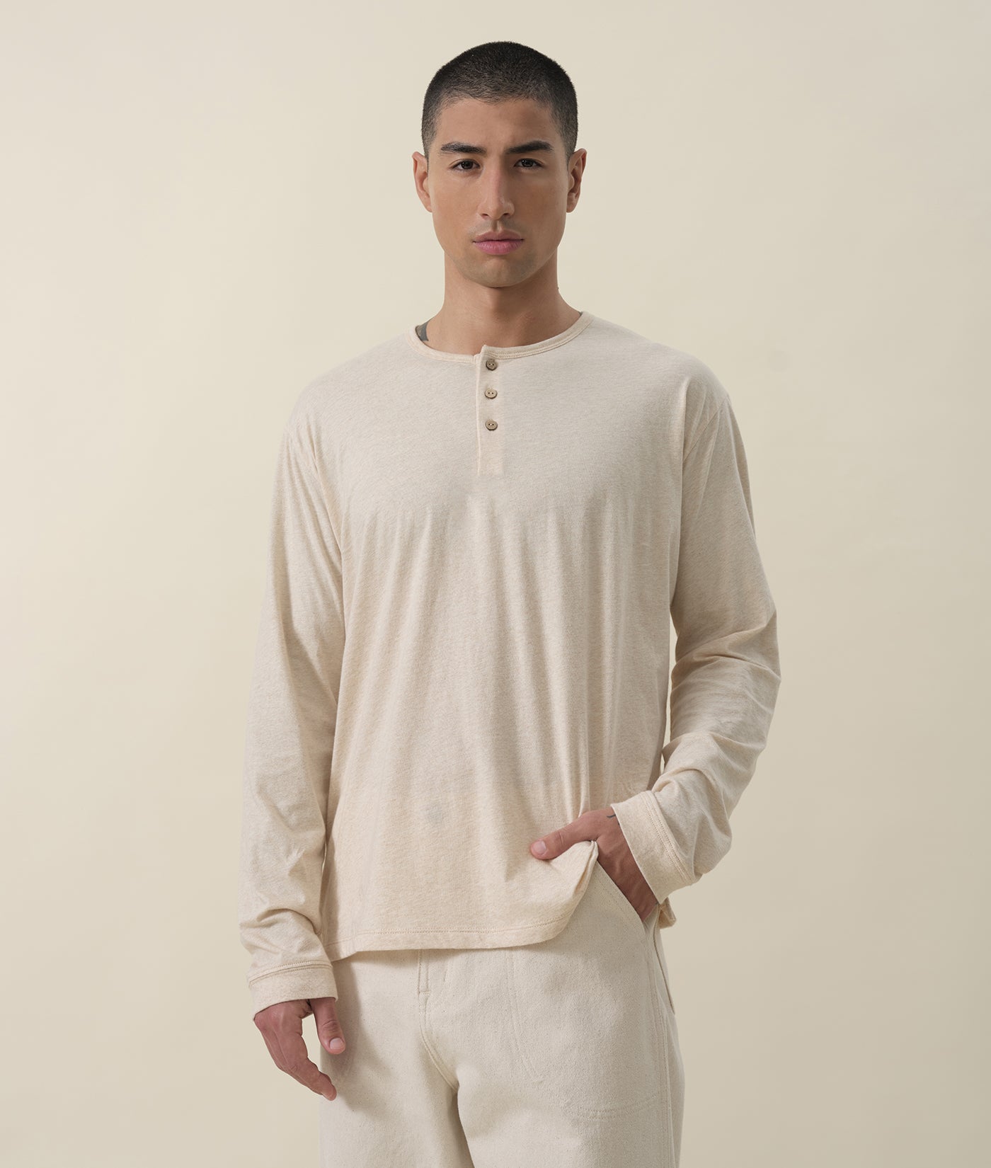 This 100% organic cotton long sleeve henley t-shirt is made from naturally pigmented cotton, meaning the garment's color comes entirely from the fiber itself. The production process of this garment requires minimal water usage and does not involve any dyeing or harmful washes. The Wild Henley features wood buttons and is fully biodegradable once it finishes its life cycle.