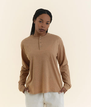 This 100% organic cotton long sleeve henley t-shirt is made from naturally pigmented cotton, meaning the garment's color comes entirely from the fiber itself. The production process of this garment requires minimal water usage and does not involve any dyeing or harmful washes. The Wild Henley features wood buttons and is fully biodegradable once it finishes its life cycle.
