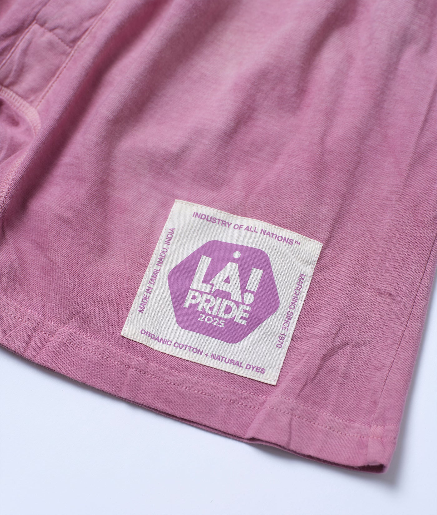Since 1970, LA Pride has been marching for visibility, representation, and the right to be fabulous! This year we partnered together to create a limited edition 100% organic cotton + natural dyes set, pictured left on the LA Pride board of directors. Same fit as our classic Jersey Boxers, this pair of underwear is exceptionally soft and breathable, featuring a form-fitting waistband made from recycled elastic, perfect for all body types. The fly buttons are carved from river shell and are fully functional.