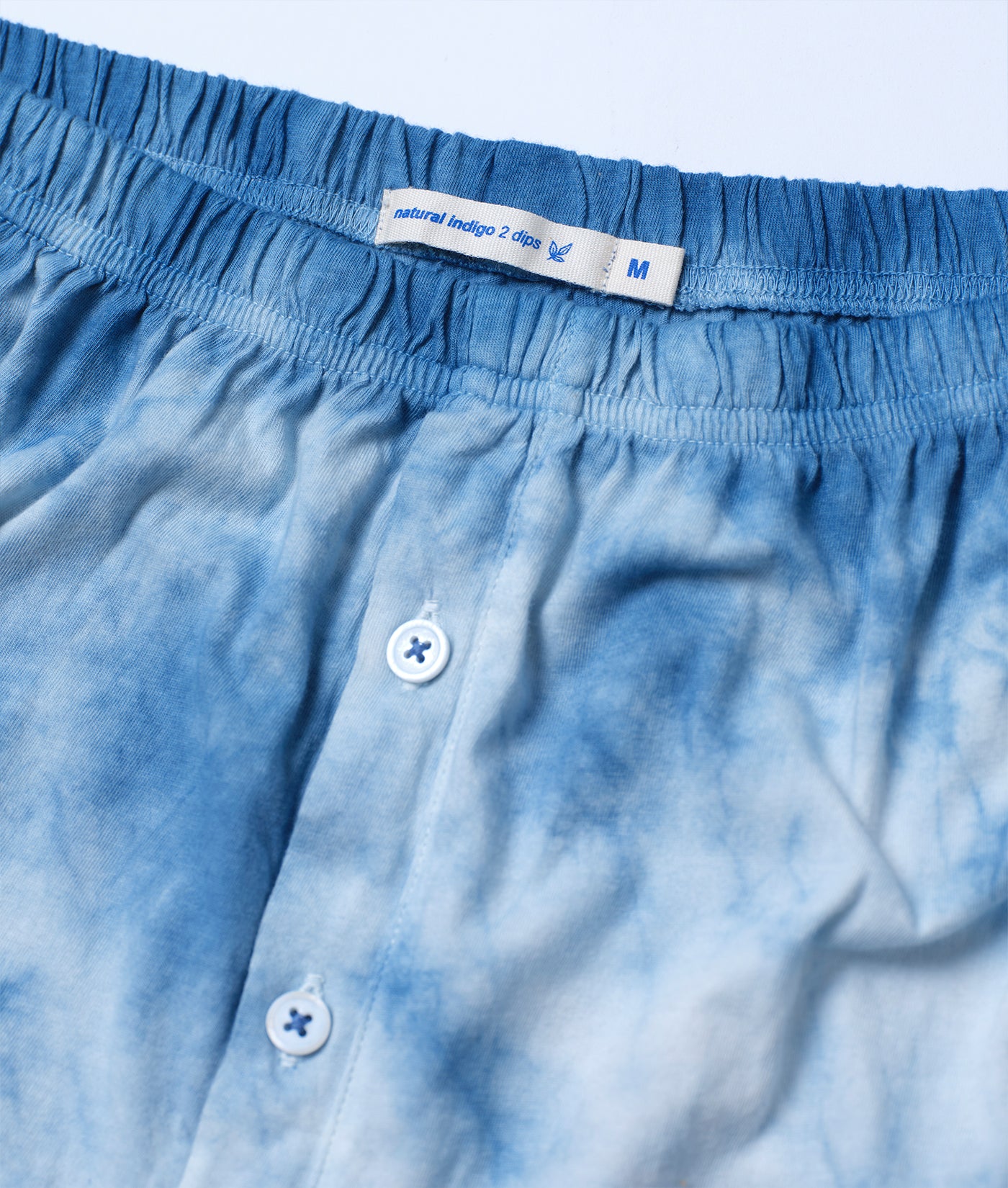Wearing vibrant colors should not come at the cost of contaminating our natural resources. This project not only eliminates petrochemical dyes, but also genetically modified and corporation-patented seeds in the cotton farming process. 100% natural dyes, water and a biodegradable enzyme wash are used for the dyeing and finishing of IOAN organic cotton products. Some of our natural dye forays include: Acacia arabica: tree bark-rust/brown tones Terminalia chebula: seeds-yellow tones Rubia cordifolia: twigs-red tones Iron vinegar: iron scraps + palm sugar for black & grey tones Shellac sticklac: insect resin-pink & burgundy tones Indigofera tinctoria: indigo leaves-blue tones. Specialized in the art of natural indigo, our dyemasters cultivate regenerative vats. The indigo solution maintained in fermentation can extend its life to decades, keeping the natural indigo richness intact, eliminating waste water and mordants during the dyeing process. Indian natural dyers use myrobalan, tannins, and wood ash as mordants for all other colors.