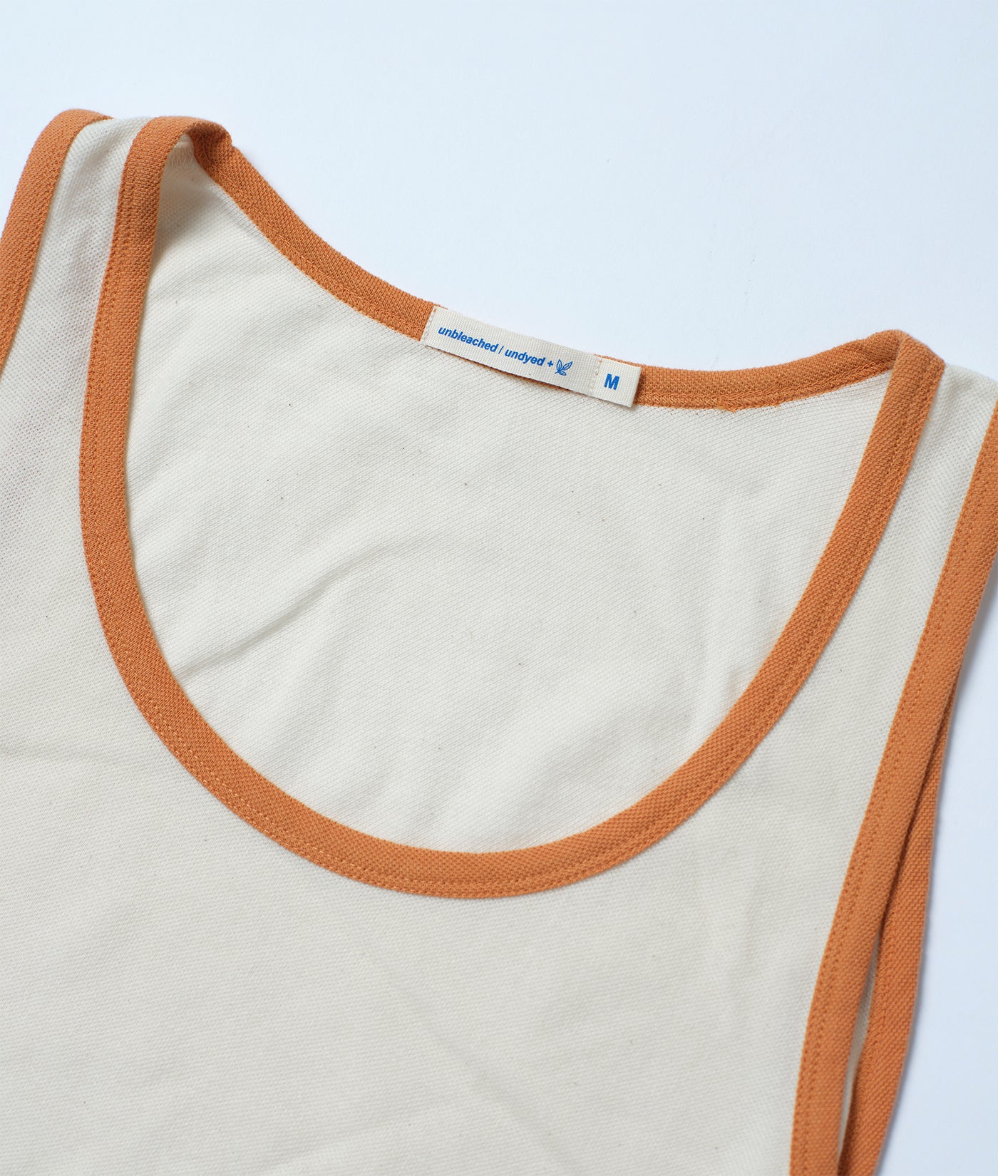 This tank top gives a modern edge to the classic warm weather essential. The neck trim has been dipped in a rubia cordifolia and chebula seed natural dye bath to achieve a red-orange color, while the rest of the garment is completely unbleached & undyed. Simple and easy to wear, the IOAN Sport Pique Tank is made from 100% organic cotton and locally manufactured in Tamil Nadu, India.