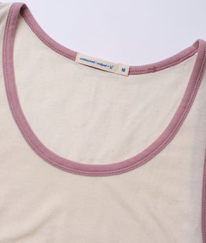 This tank top gives a modern edge to the classic warm weather essential. The neck trim has been dipped in a shellac resin natural dye bath to achieve a pink-purple color, while the rest of the garment is completely unbleached & undyed. Simple and easy to wear, the IOAN Sport Pique Tank is made from 100% organic cotton and locally manufactured in Tamil Nadu, India.