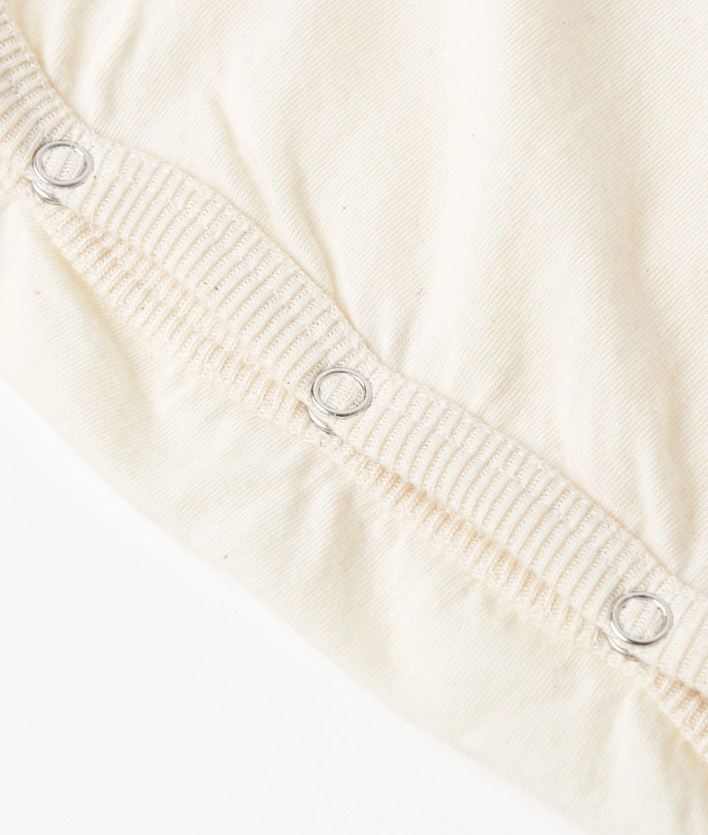 An IOAN baby staple that is lightweight and soft for everyday wear. This baby onesie is made from locally grown 100% organic cotton in Tamil Nadu, India.