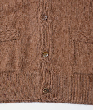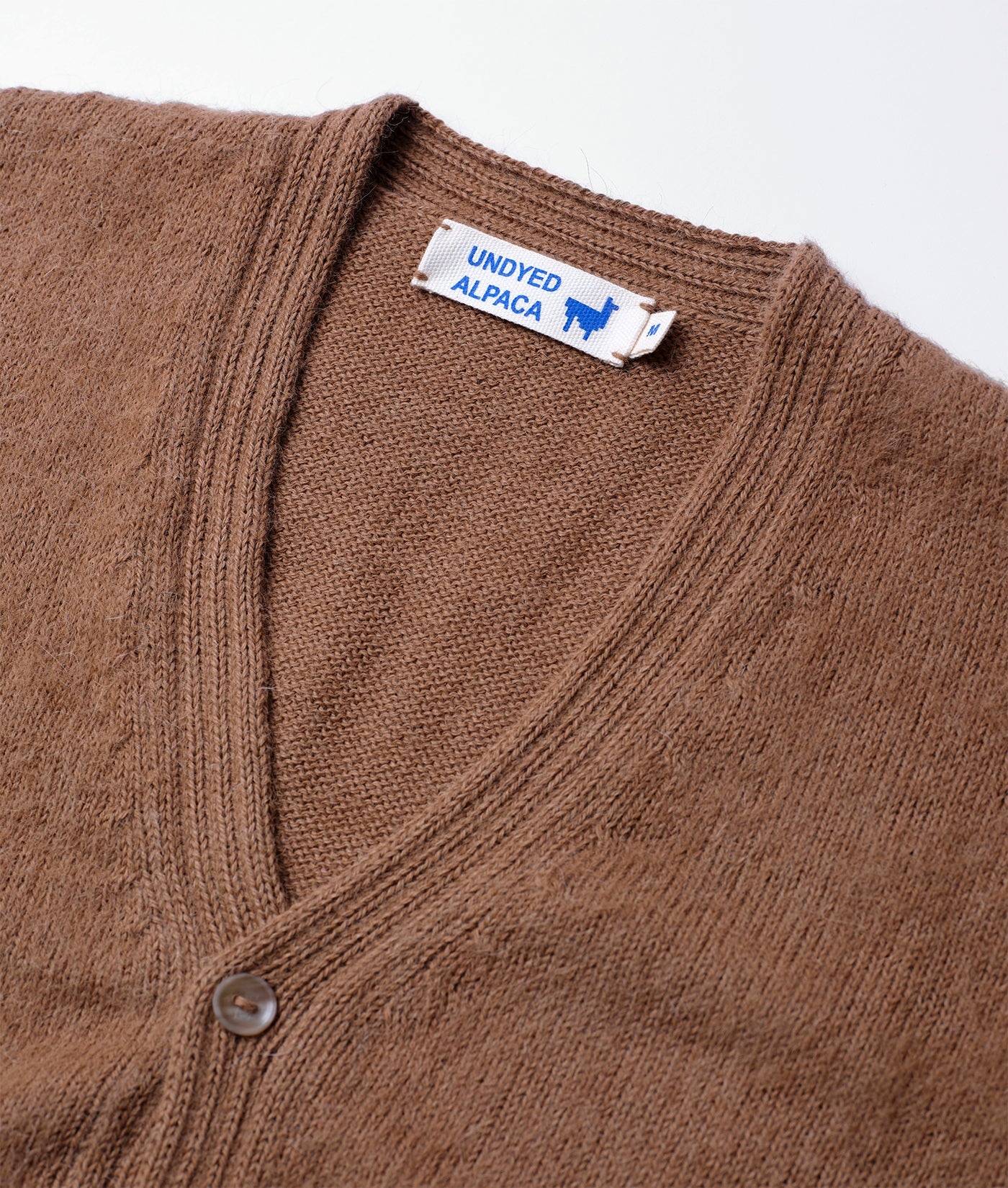 The IOAN Alpaca Cardigan is made from 100% alpaca fiber by a Bolivian co-op of farmers, manufacturers, and knitters. This hypoallergenic sweater is finished with genuine horn buttons and knit in a classic cardigan fit. The production of this ultra soft, medium-weight cardigan sweater supports the local lifestyles, craftsmanship, and the future of this community. This garment is undyed and the color of the fibers comes completely from the superfine, natural hairs of the alpaca that are transformed into yarn for artisans to knit.