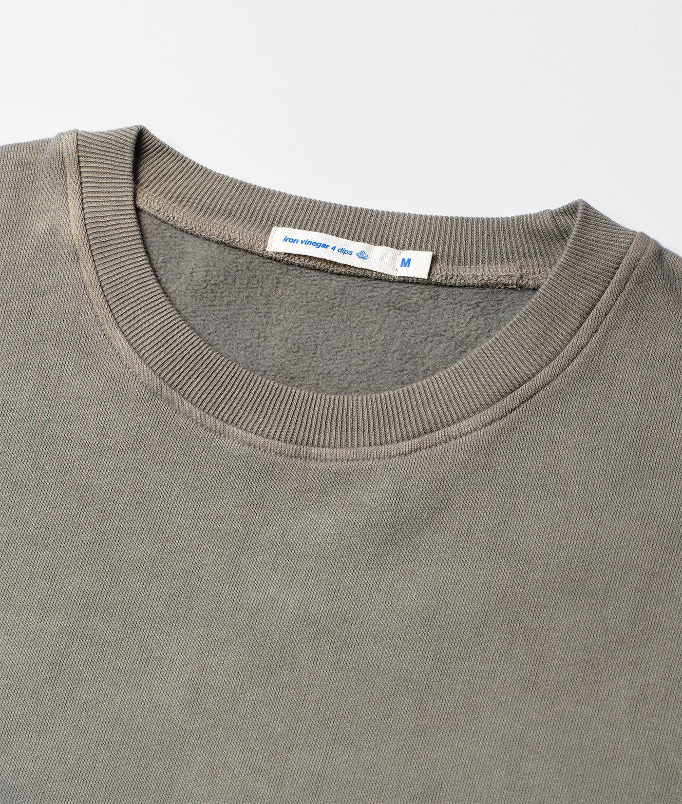 This medium-weight sweatshirt is made in Tamil Nadu, India using local 100% organic cotton and has been dipped in a fermented iron vinegar vat 4 times to a achieve an earthy mushroom shade of gray. This sweatshirt has a boxy cut, an ultra-soft fleece finish inside and side slits that allow for a full range of motion.