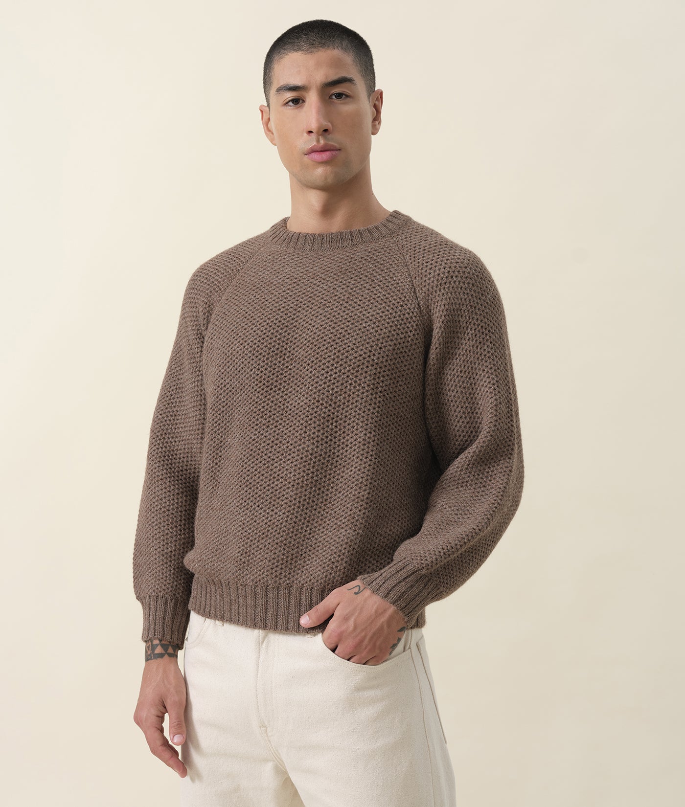 This sweater is made from 100% alpaca wool by a Bolivian co-op of farmers, manufacturers, and knitters. The production of this fine, heavy-weight sweater supports the local lifestyles, craftsmanship, and the future of this community. The relaxed fit of this Alpaca Raglan Sweater ensures warmth and comfort warm with ease of movement.