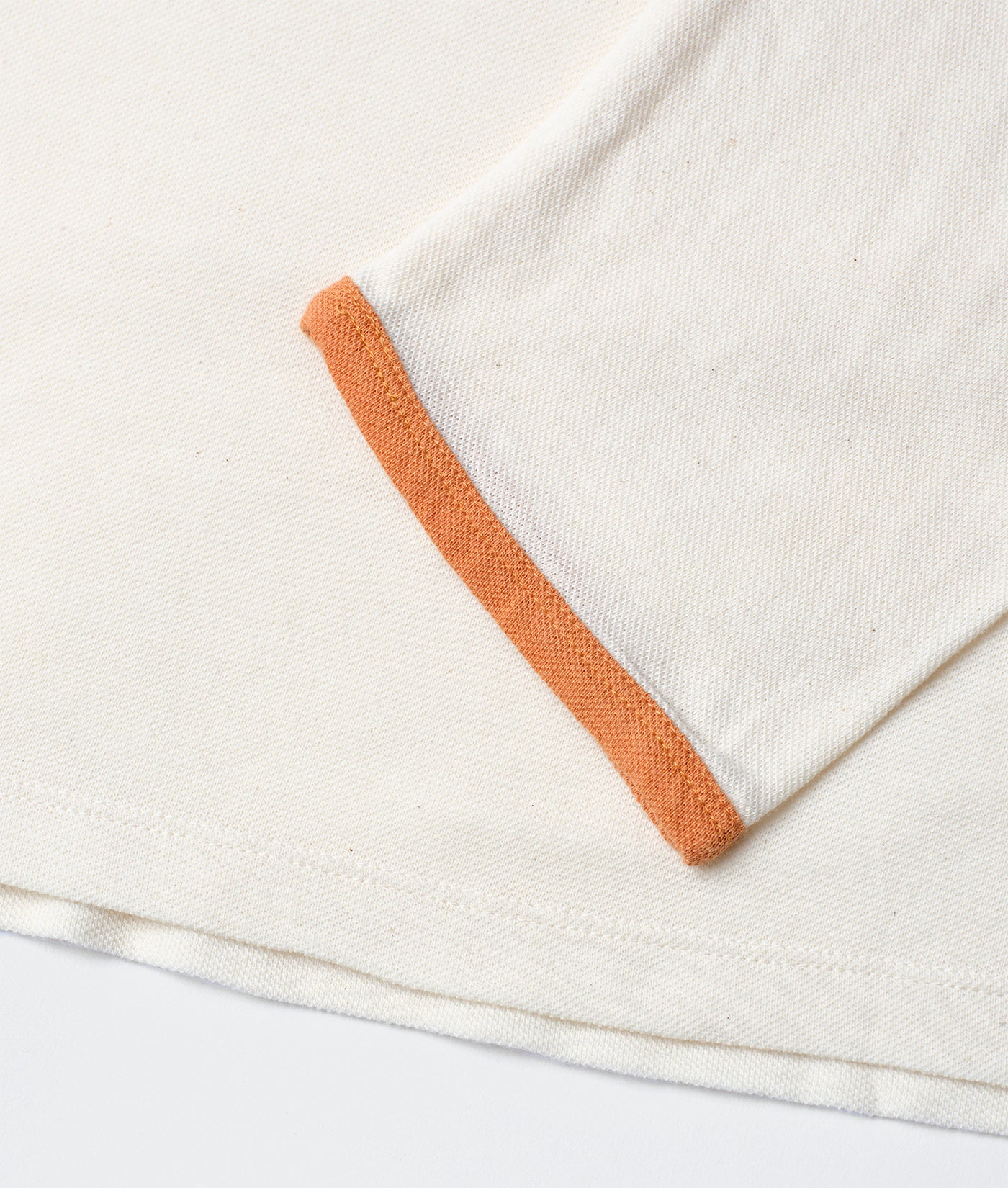 The Sport Pique Crew is made from 100% organic cotton, locally sourced in Tamil Nadu, India. The neckline has been dipped in a chebula seed and madder root natural dye bath to achieve vibrant orange color, while the rest of the garment is completely unbleached & undyed. Pre-washed for a perfect fit from day one, this long sleeve tee is a new go-to for easy style and comfort.