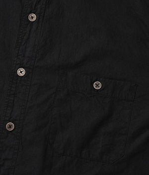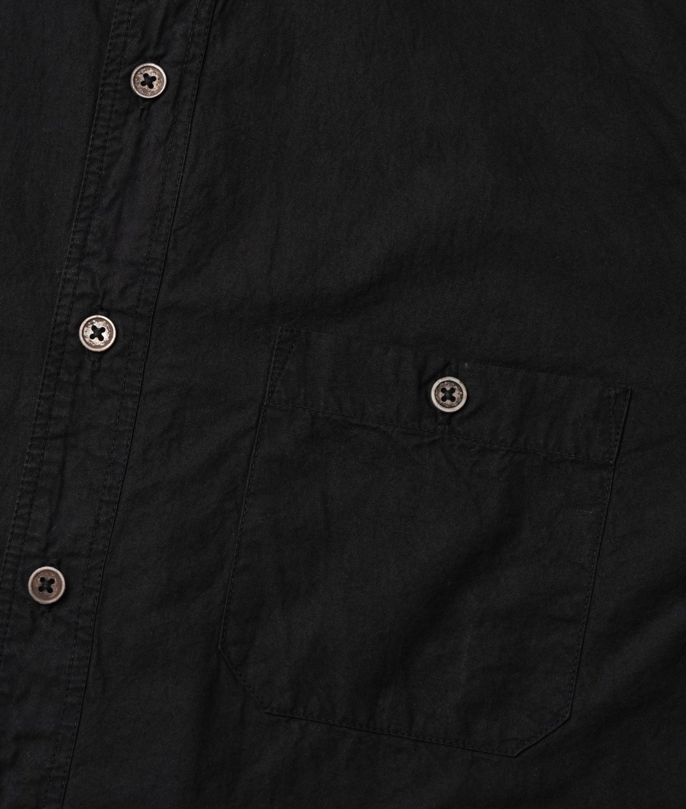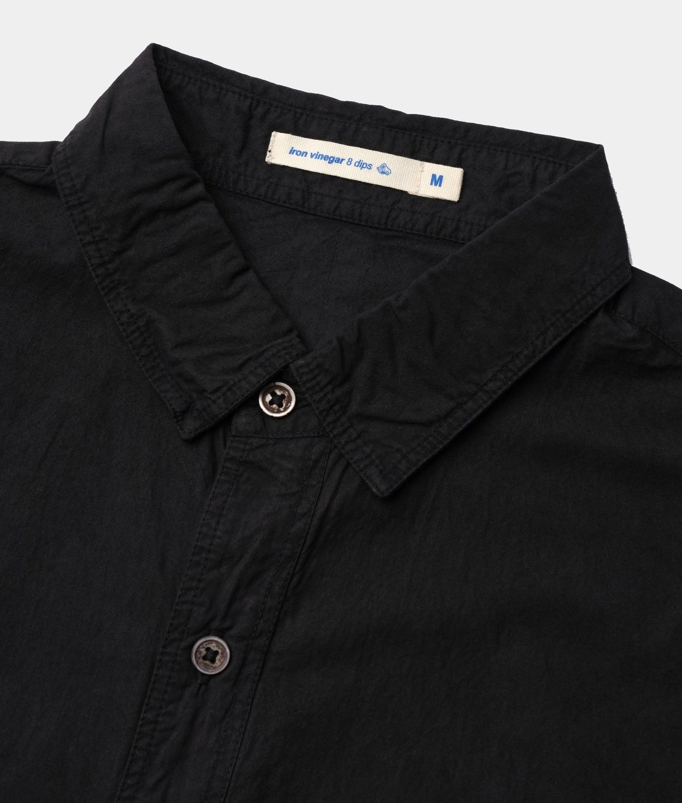 Made from mid-weight 100% organic cotton fabric, this shirt has been dipped 8 times in a fermented iron vinegar dye vat to achieve an earthy black color, and is finished with river shell buttons. Expertly made in Tamil Nadu, India, this cropped length shirt is perfect for warm weather and exceptionally breathable.