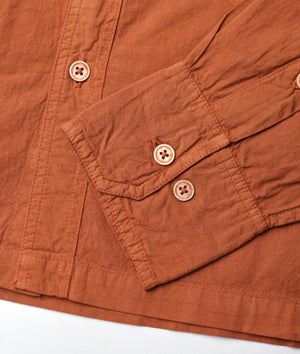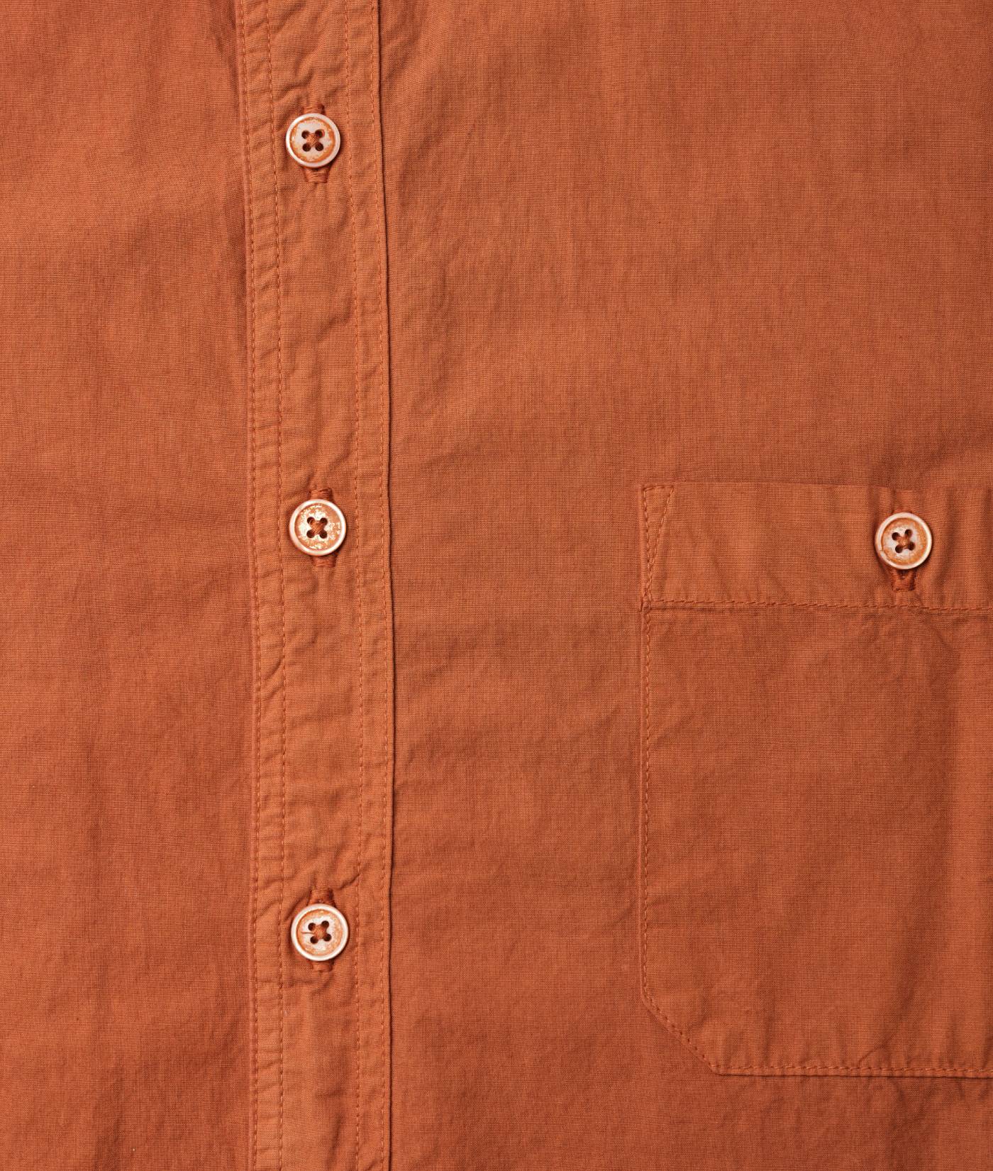 Made from mid-weight 100% organic cotton fabric, this shirt has been dipped in an acacia tree bark natural dye vat to achieve a unique, rust brown color, and is finished with river shell buttons. Expertly made in Tamil Nadu, India, this cropped length shirt is perfect for warm weather and exceptionally breathable.