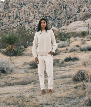 The entire manufacturing cooperative based in Bolivia employs 1,200 families. From farmers in the highlands to fiber processors in the city, and the teams of women who knit the finished product from their homes, these families maintain ownership over the entire manufacturing process as well as its development. By working from home, the women can dedicate more time to family culture, while benefiting from stable living conditions and fair wages. Each of these aspects contributes to a larger process that supports local lifestyles, Andean craftsmanship, and the future of this community.
