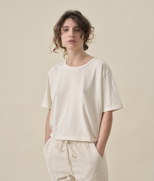 Simple and easy to wear, this cropped t-shirt is made from 100% organic cotton and locally manufactured in Tamil Nadu, India.