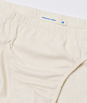 These jersey briefs are made from 100% unbleached and undyed organic cotton in Tamil Nadu, India. This pair of underwear is exceptionally soft and breathable, featuring a form-fitting waistband made from recycled elastic, perfect for all body types.