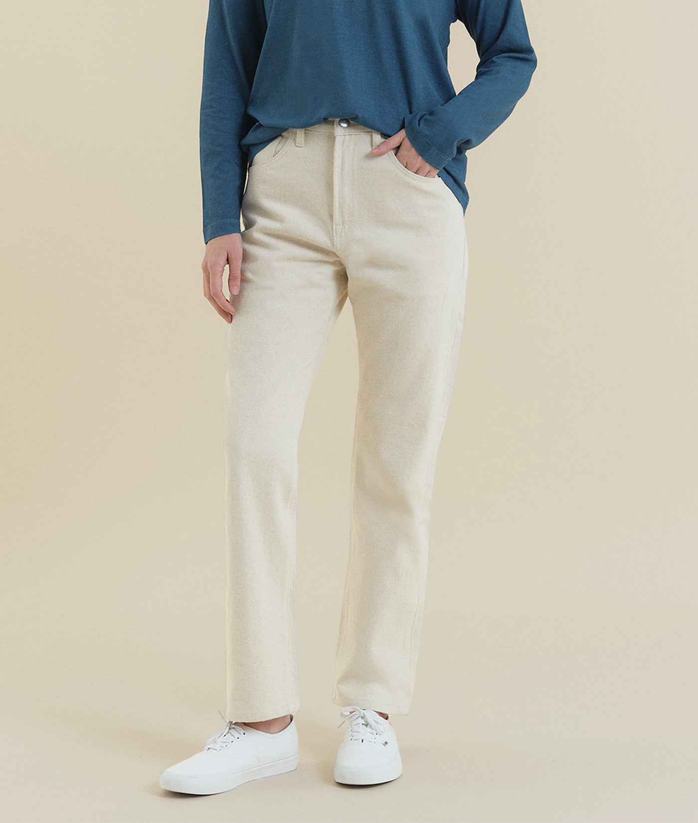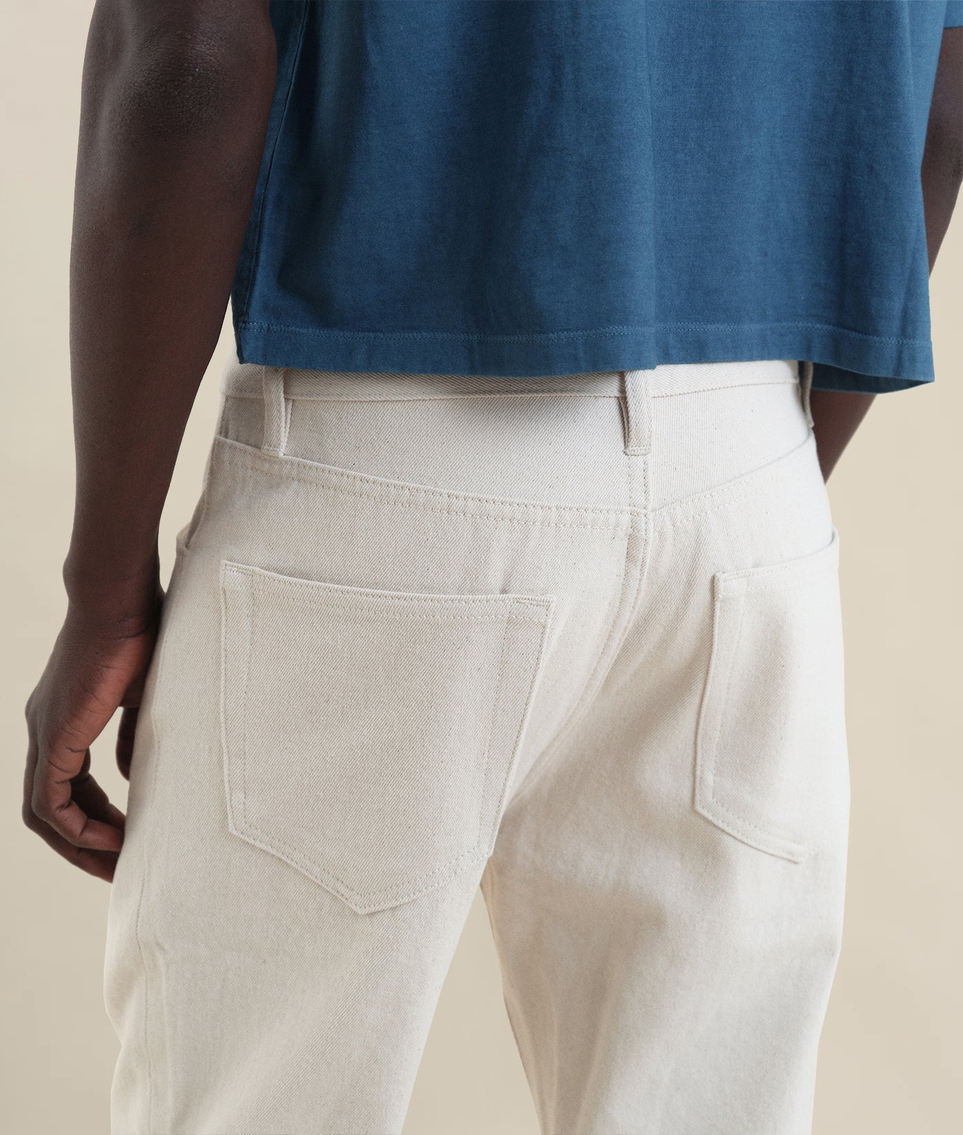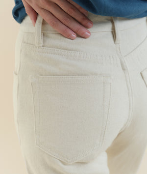 The New Jeans have a unisex fit, with a higher rise and straight leg. These jeans are made from cotton textile waste, which is collected from local factories and upcycled into new fabric, a process that is waterless and does not involve any dyeing or harmful washes. Made in partnership with The New Denim Project in Guatemala City, each pair features a zipper fly, and is finished with IOAN nickel-free metal buttons.